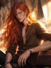 Описание внешности: Приятная внешность с мягкими чертами лица: прямой едва вздернутый нос, мягкий изгиб губ, миндалевидный разрез глаз. Взгляд открытый и внимательный. Волосы неприлично рыжие, длинные (ниже лопаток) слегка вьющиеся, обычно носит их распущенными или небрежно связанными в хвост. Частенько рисует стрелки на глазах, чтобы подчеркнуть взгляд. Проколото левое ухо. На левой руке татуировка. На среднем пальце левой руки носит подаренное братом кольцо. Предпочитает яркие цвета в одежде.Биография персонажа: